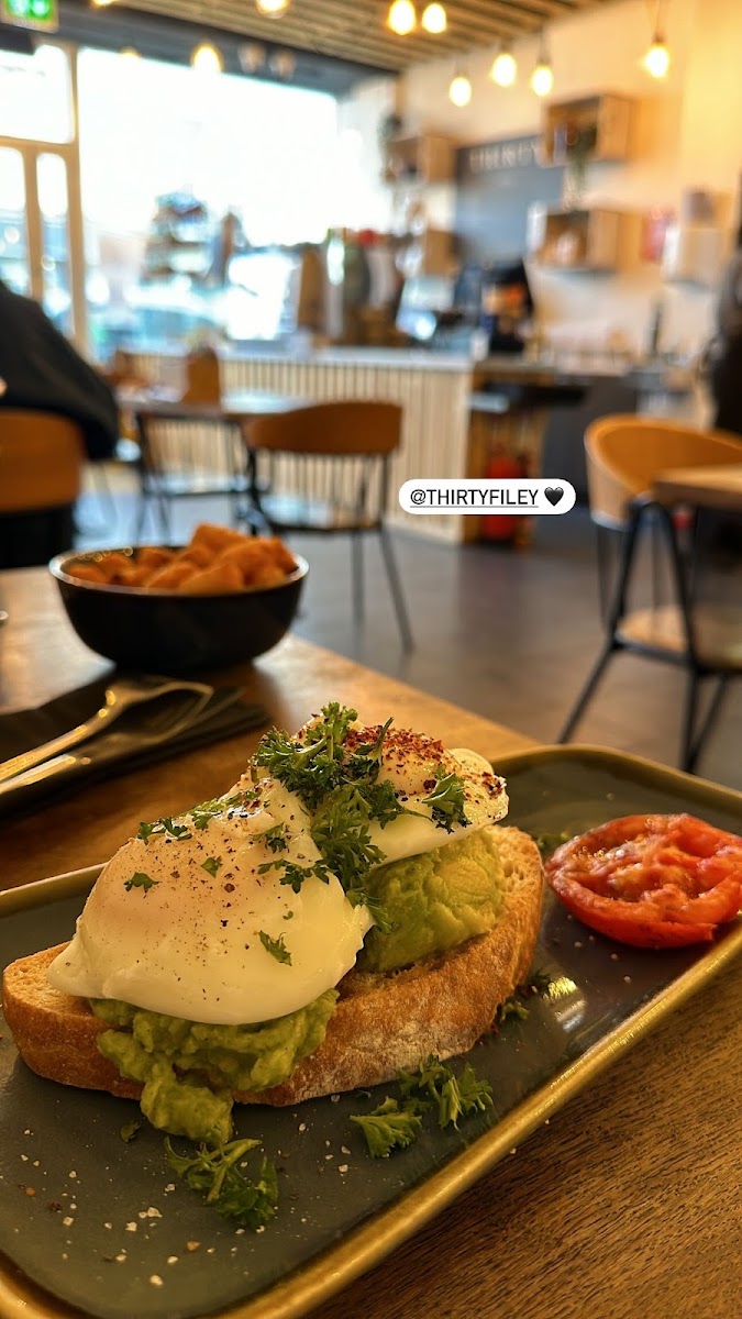 One of the standout features of Thirty Coffee Shop & Eatery is its wide range of delicious dishes, each crafted to perfection. If you're in the mood for a classic breakfast, the Eggs Benedict and Half English Breakfast are both excellent choices. For those who prefer a lighter start to their day, the Avocado Toast or the Lemon Curd French Toast provides a delightful balance of flavors. If you're more in the mood for something indulgent, try their Pancakes, topped with syrup, or the sweet and savory Eggs Royale.